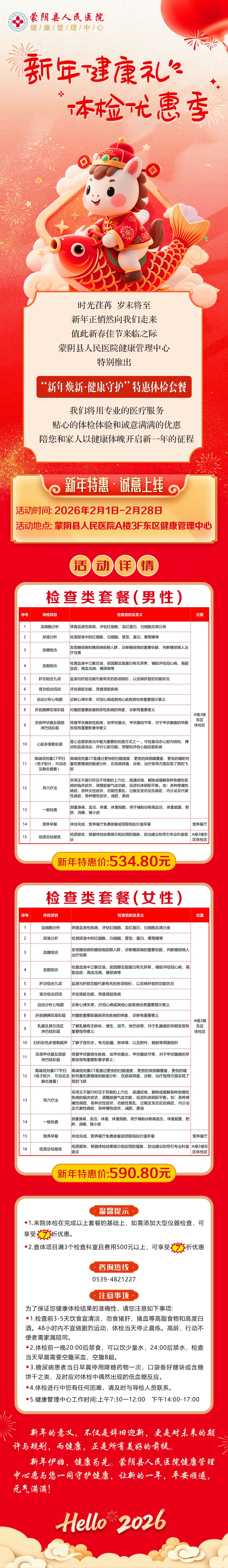迎新送福·健康启航 | 蒙阴县人民医院健康管理中心春节专享体检限时开启