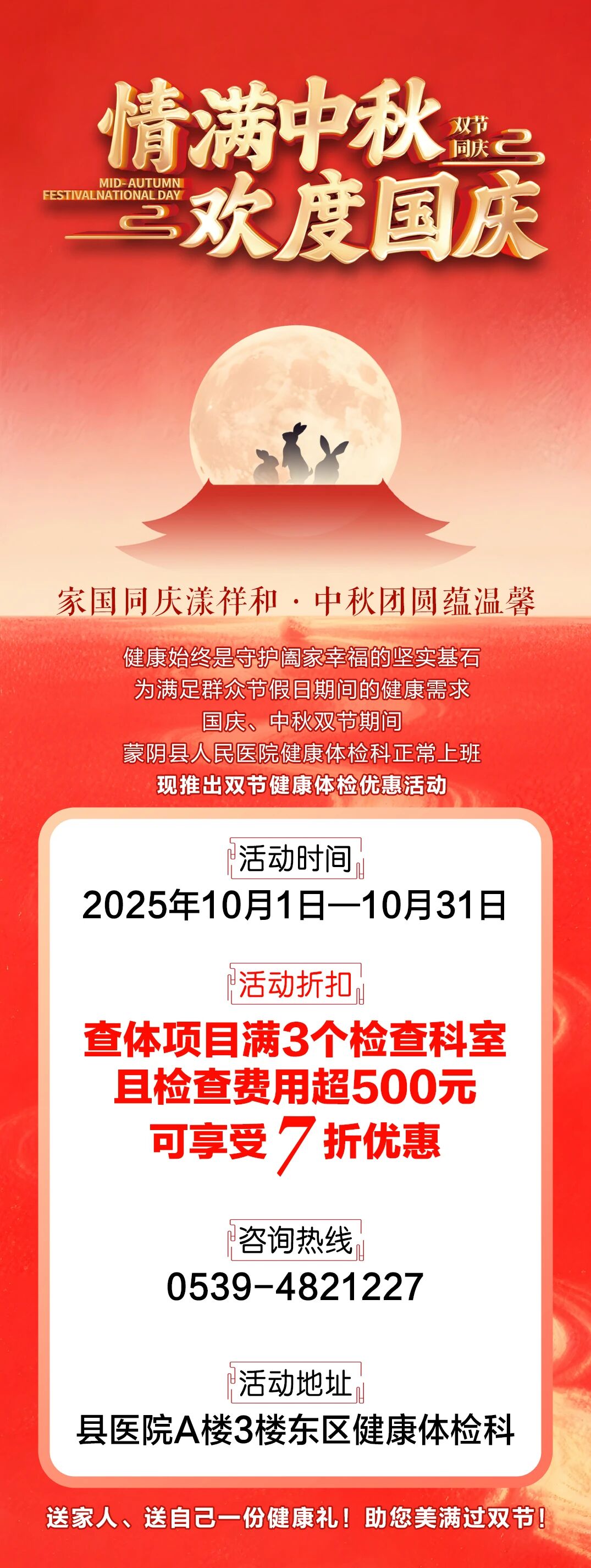 庆国庆·迎中秋·共团圆丨蒙阴县人民医院健康体检优惠活动暖心上线