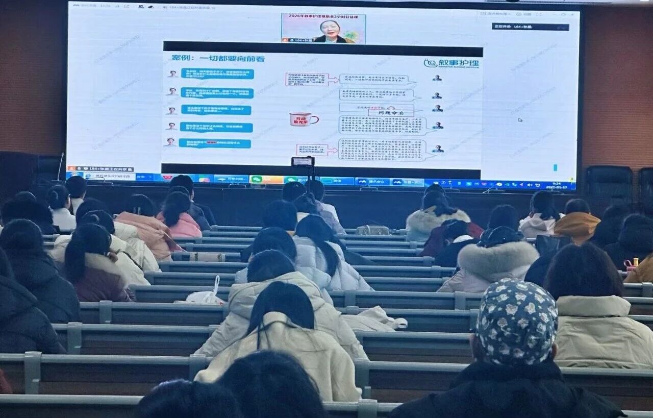 朔风藏暖意,叙事润仁心。2026年1月17日,由全国叙事护理创始人李春老师发起并培育的叙事护理领航者全国叙事护理公益课项目,走进蒙阴县人民医院。我院荣幸邀请到武汉市中心医院胃肠外科张星老师,开展《叙事护理“3554四叶草”模型》专题培训。本次培训采用线上线下形式授课,县卫健系统妇联成员单位、县护理质控中心成员单位、县医院护理部及医院各科护士长、护理骨干200余人参会。