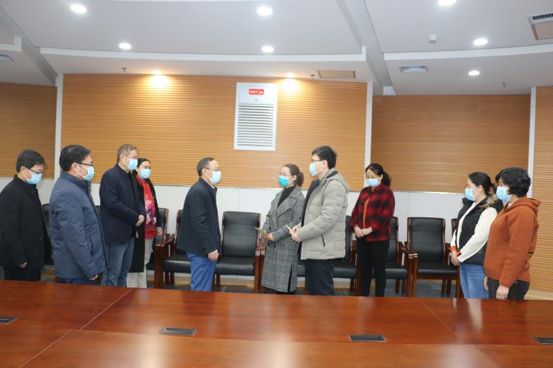 党委书记、院长胡乃珂代表医院向支援湖北医务人员家属送上慰问金