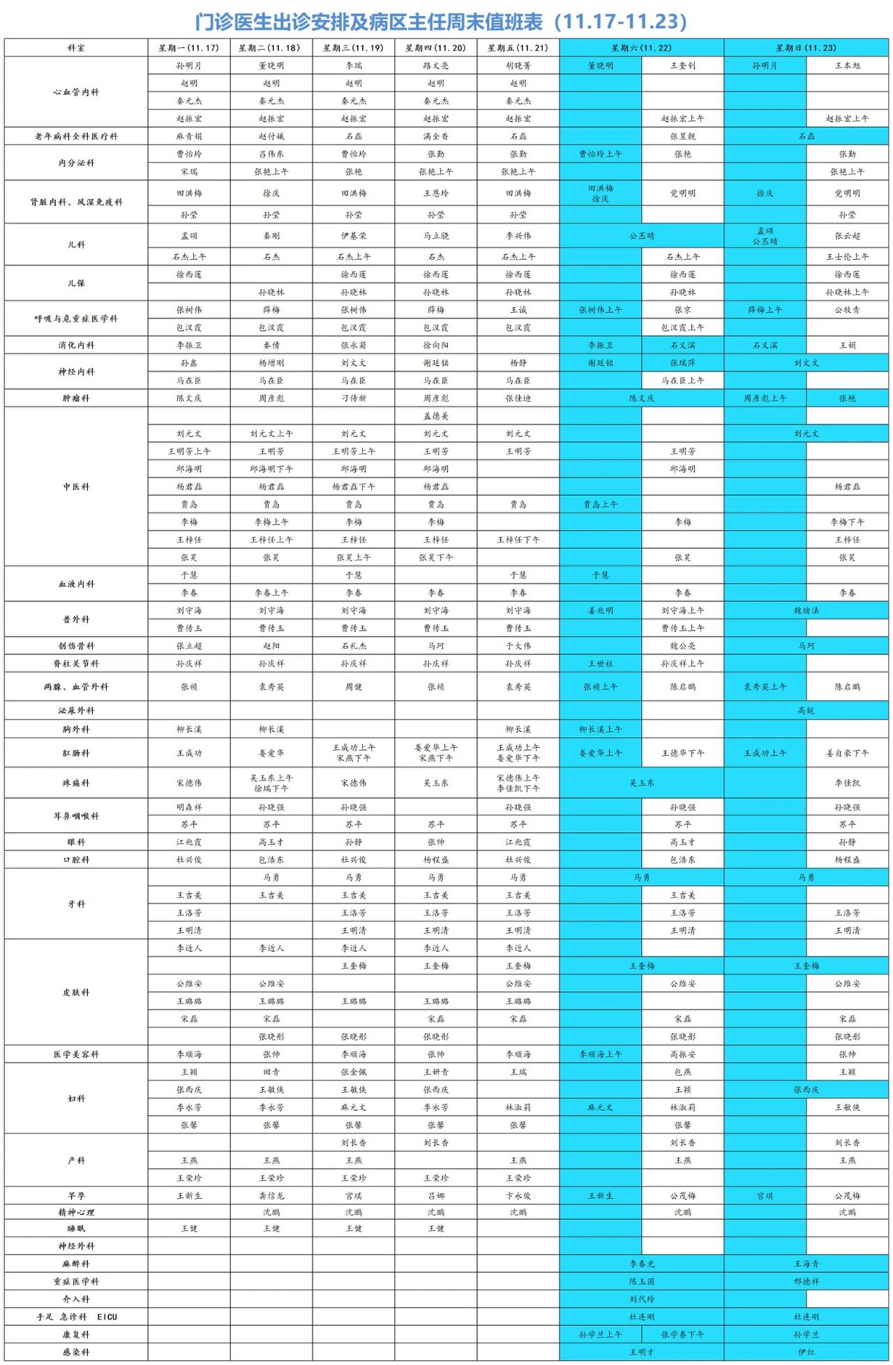便民服务 | 蒙阴县人民医院门诊医生出诊安排及病区主任周末值班表(11月17日—11月23日)